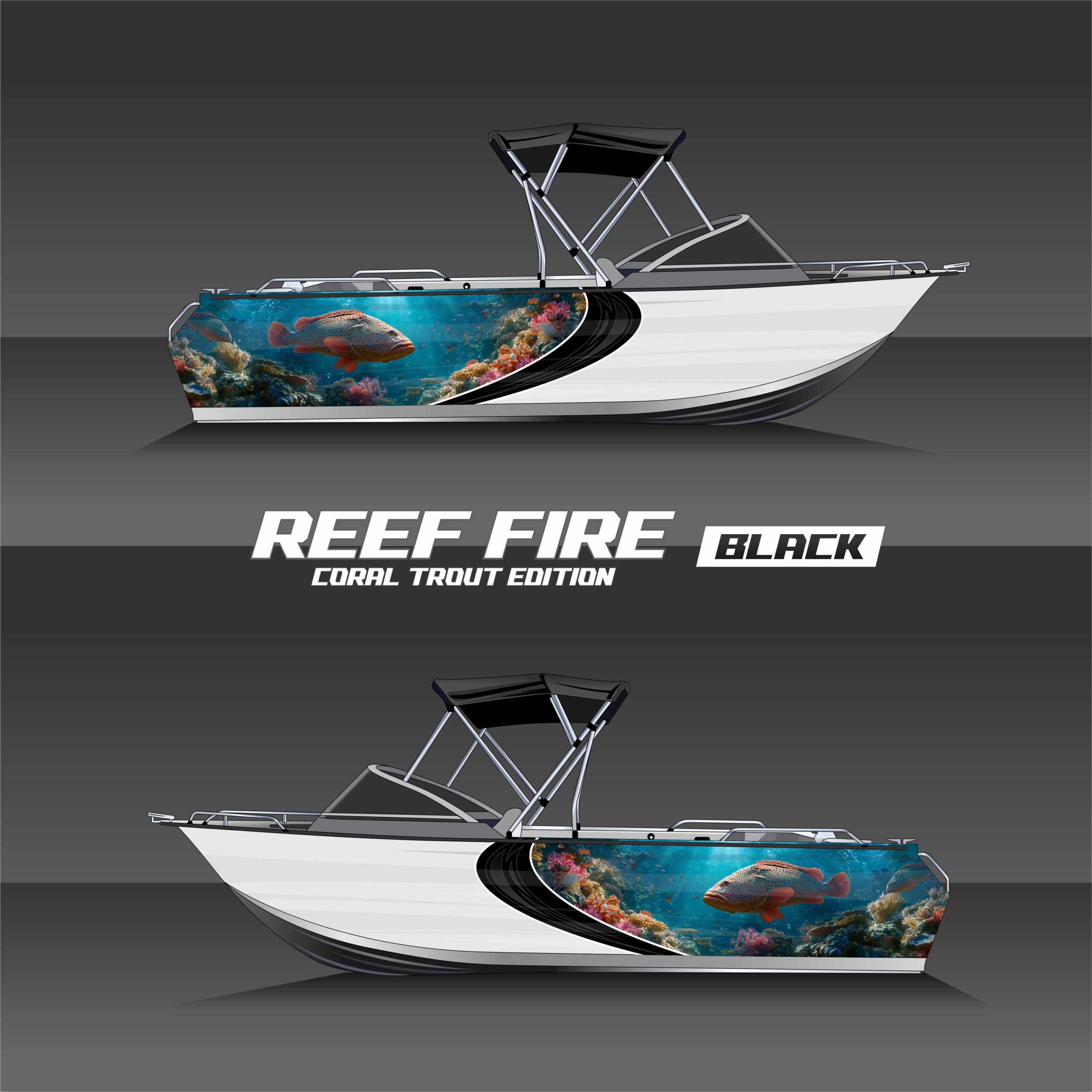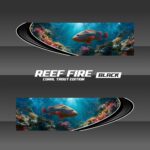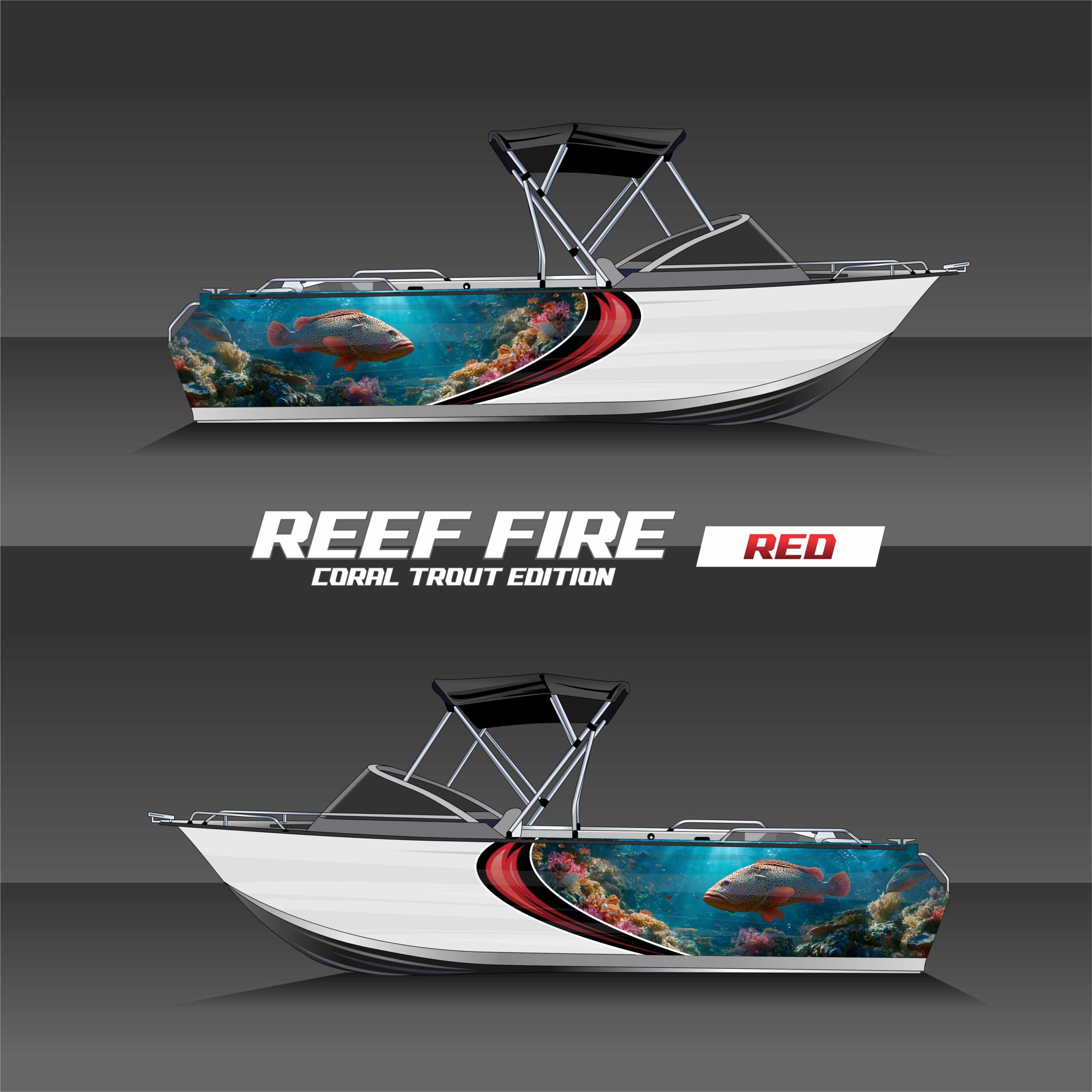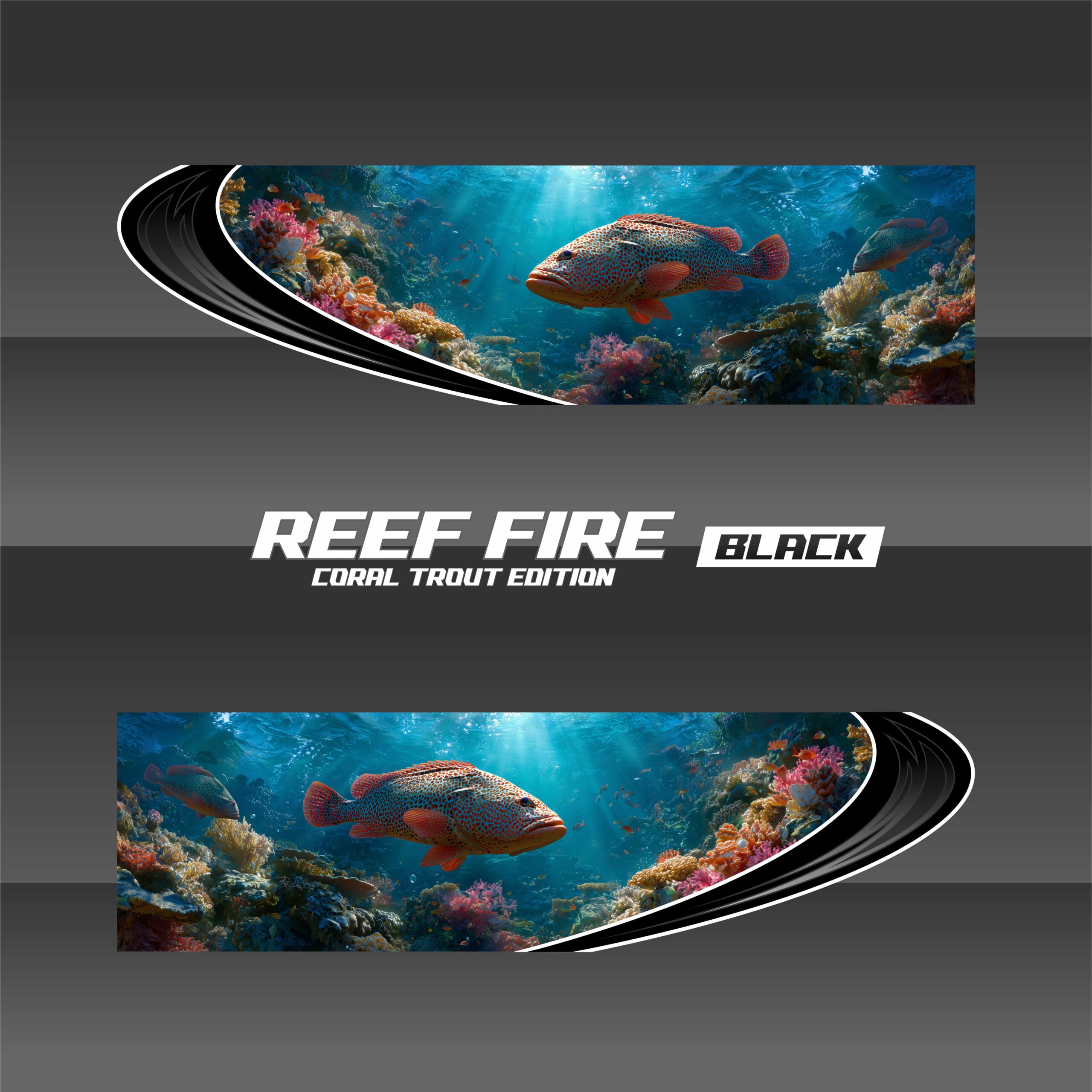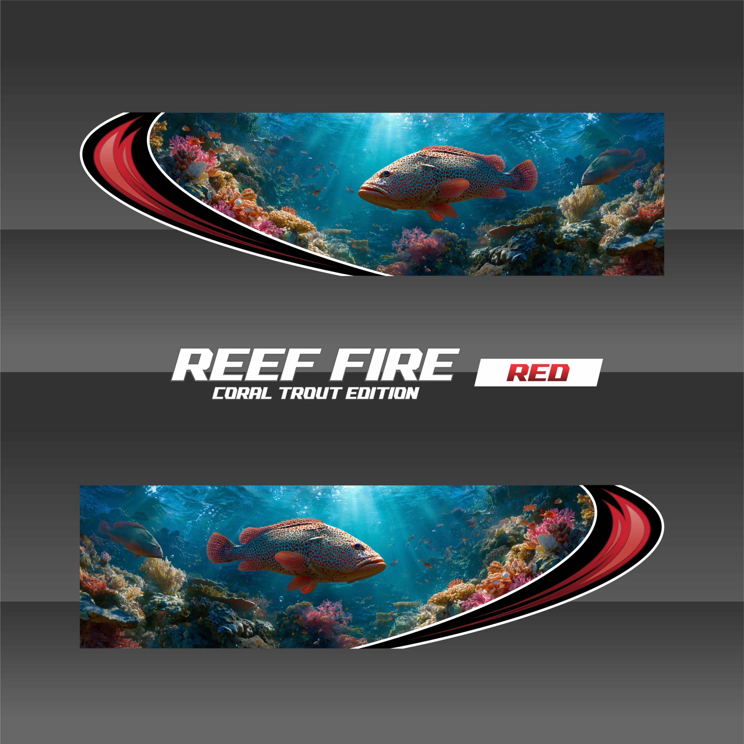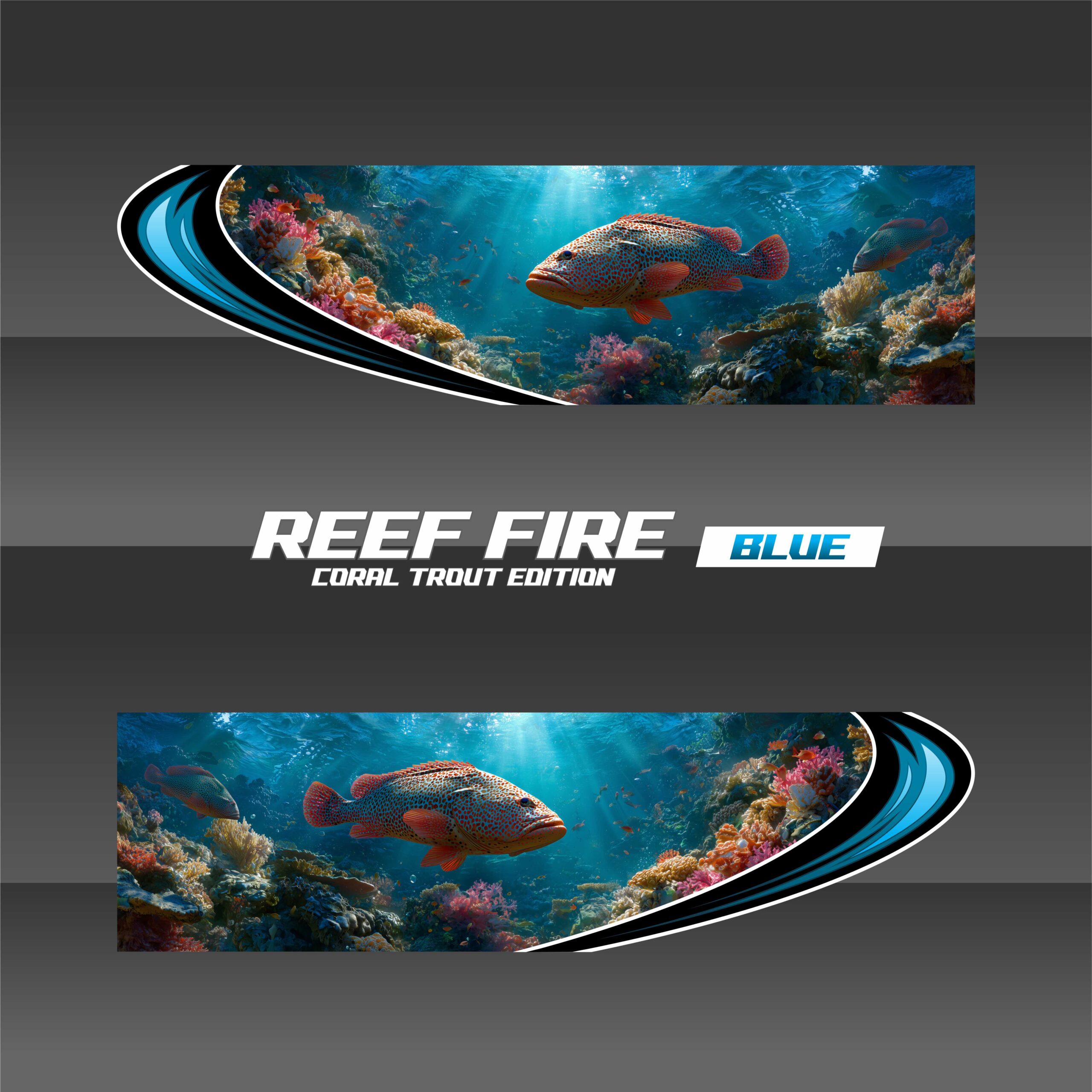REEF FIRE captures the coral trout in full color — bold reds, electric blues, and spotted armor set against a shallow reef fade. It’s a natural ambush artist frozen in motion.